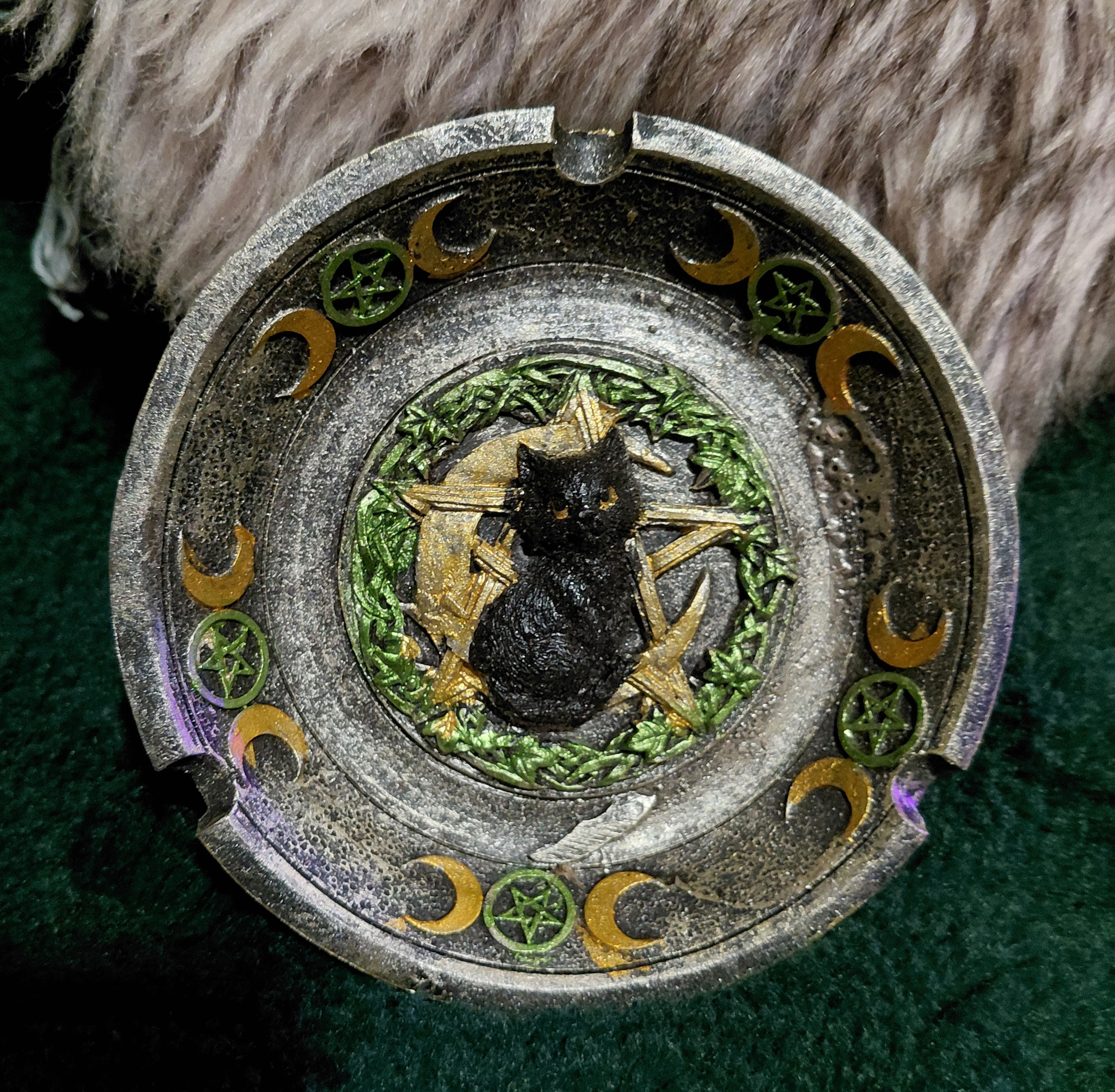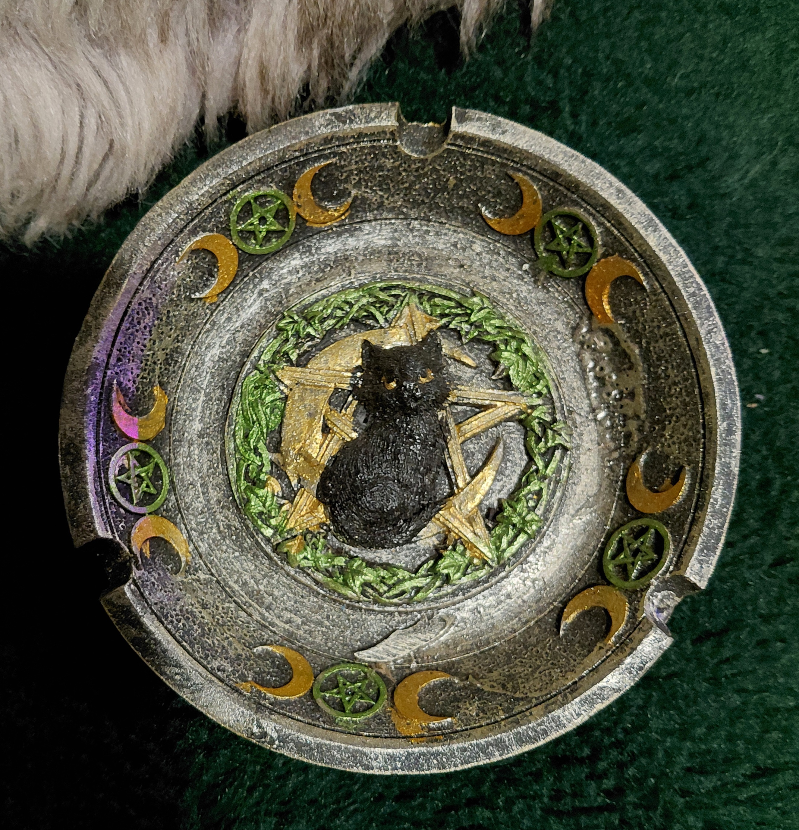 Black Cat Pentacle & Triple Moon Incense Dish – Witchcraft Altar Decor