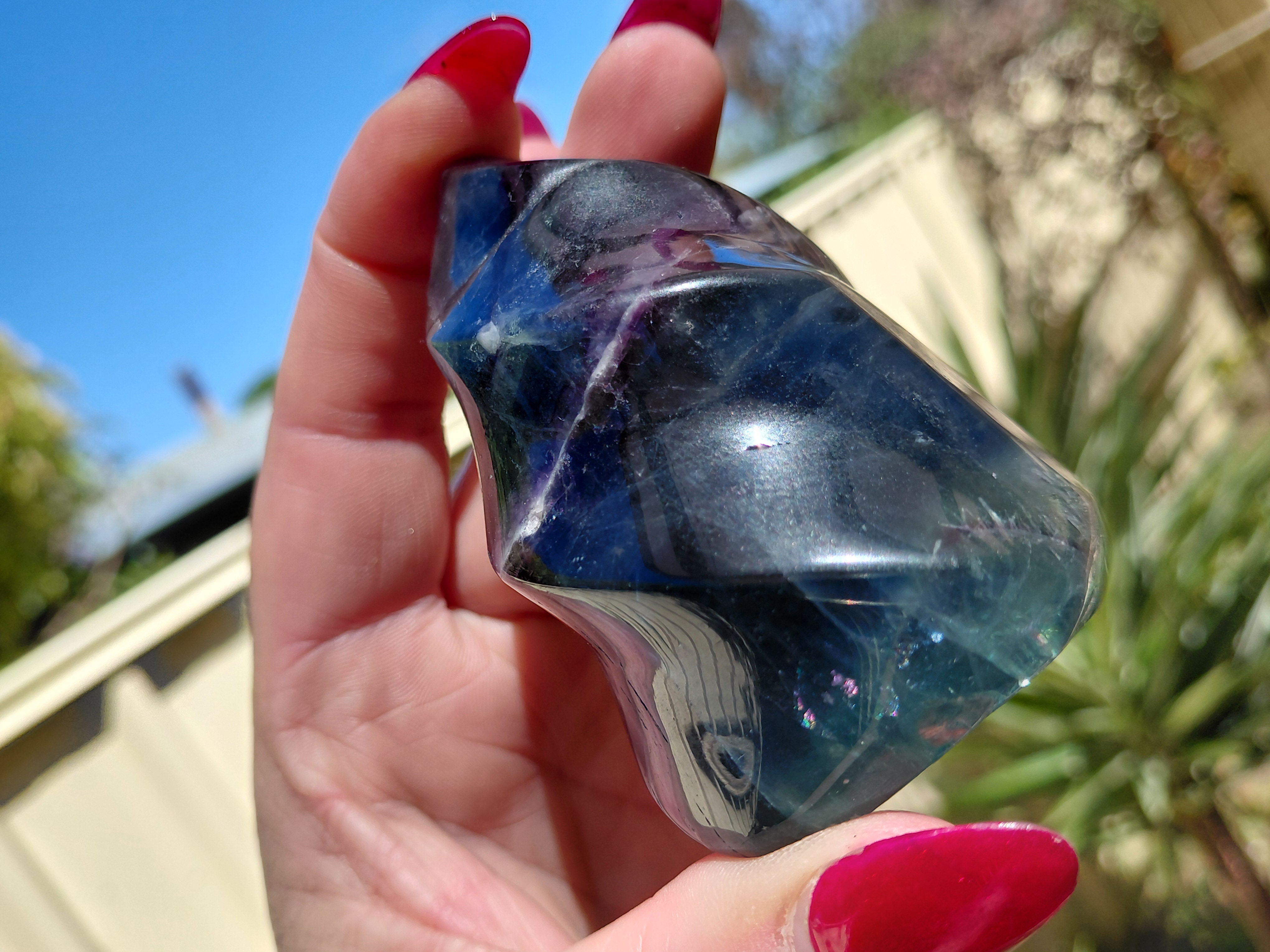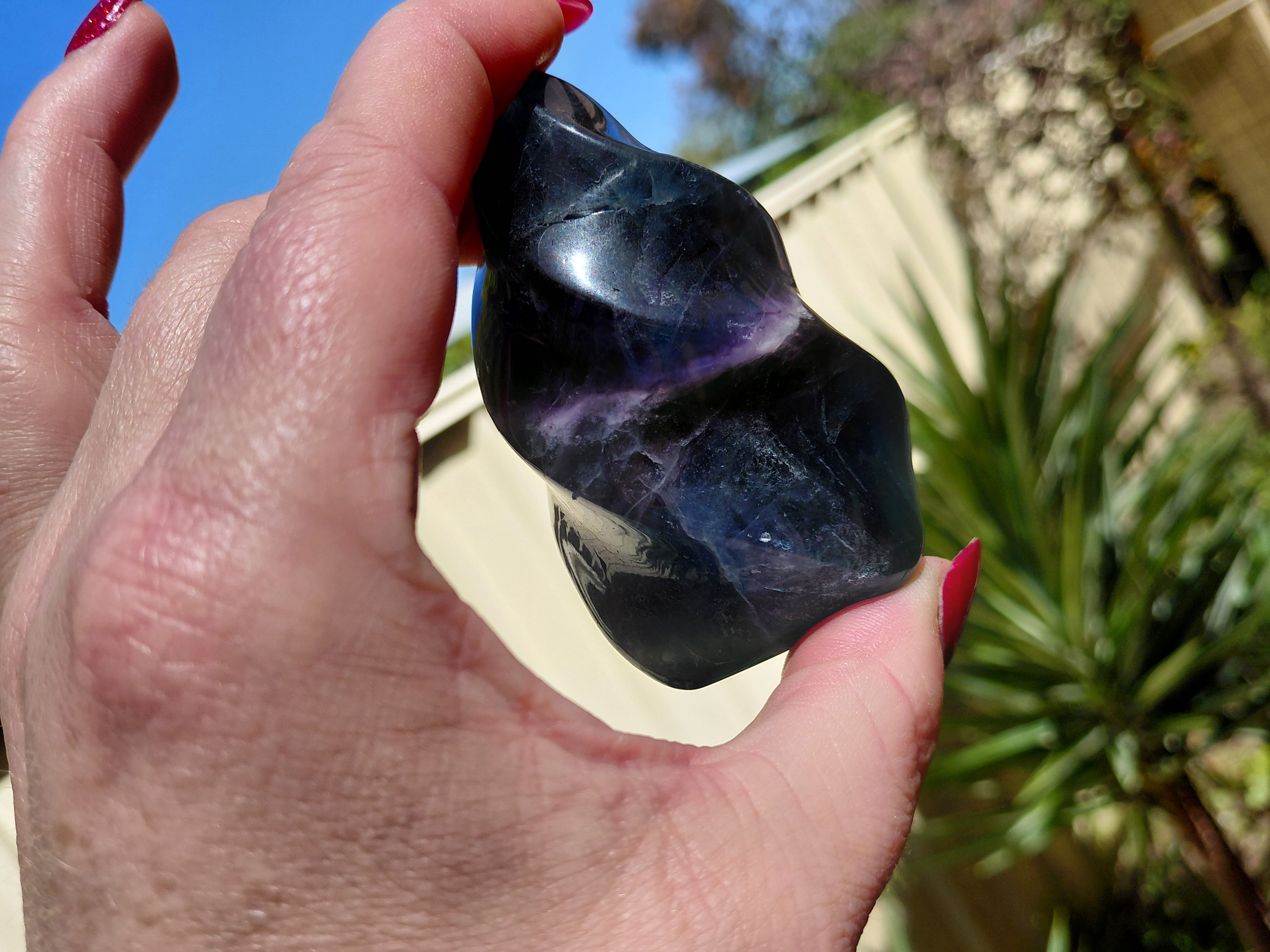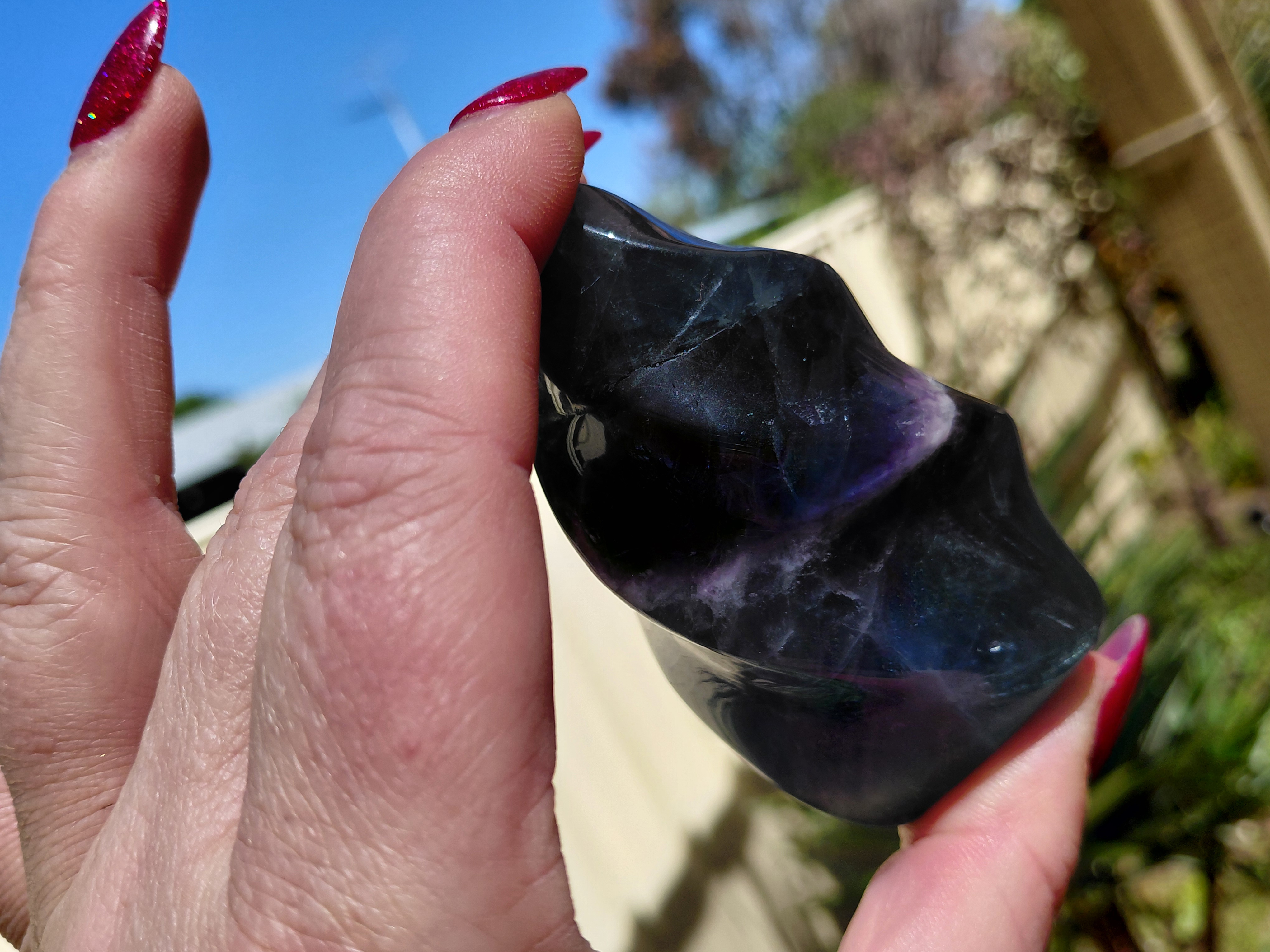 But the Flourite Flame isn’t just about looks! Flourite is known for its healing properties, believed to promote clarity of mind and emotional balance. Placing this beautiful sculpture in your space can help create a serene environment, perfect for relaxation or meditation. Whether you’re looking to enhance your living room, bedroom, or workspace, the Flourite Flame is versatile enough to fit in anywhere.