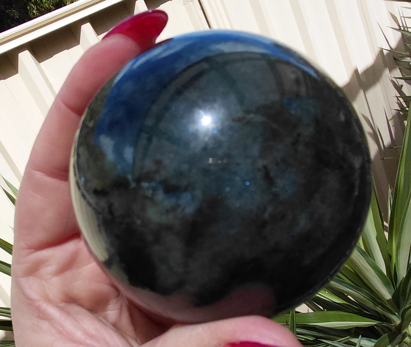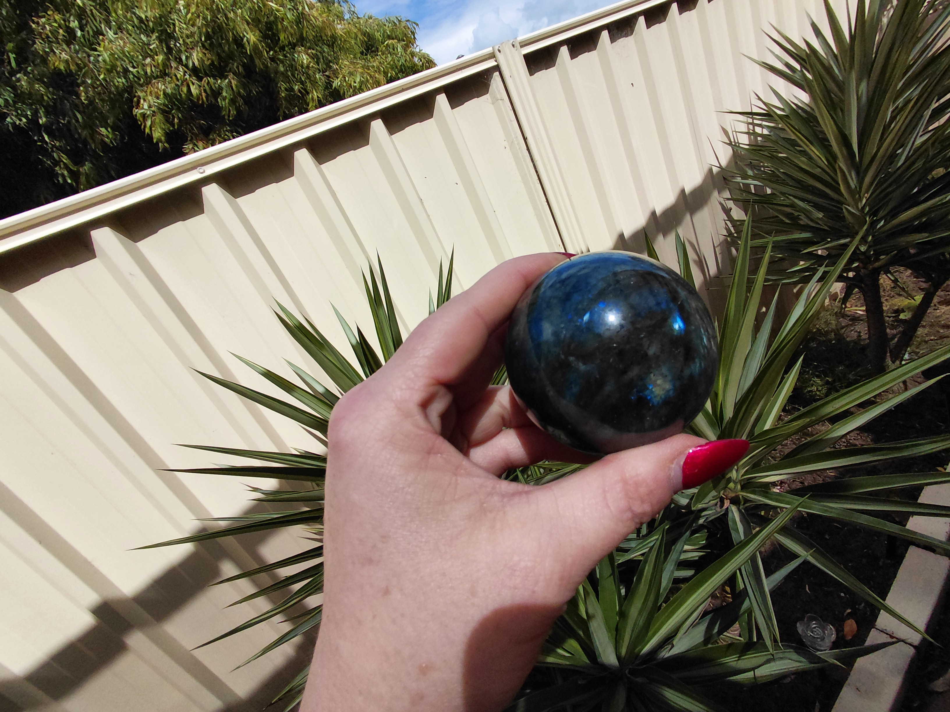 Introducing the stunning Labdaroite Sphere, a mesmerizing addition to your crystal collection! This beautiful sphere is not just a decorative piece; it’s a powerful tool for enhancing your spiritual journey and bringing positive energy into your life. Crafted from high-quality labradorite, this crystal sphere showcases the unique play of colors that labradorite is famous for, with flashes of blue, green, and gold that dance across its surface, captivating anyone who lays eyes on it.