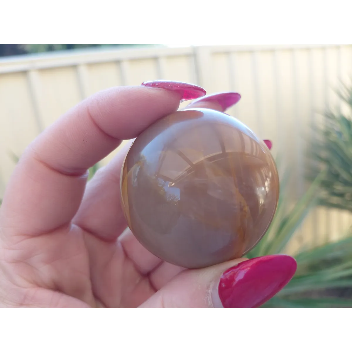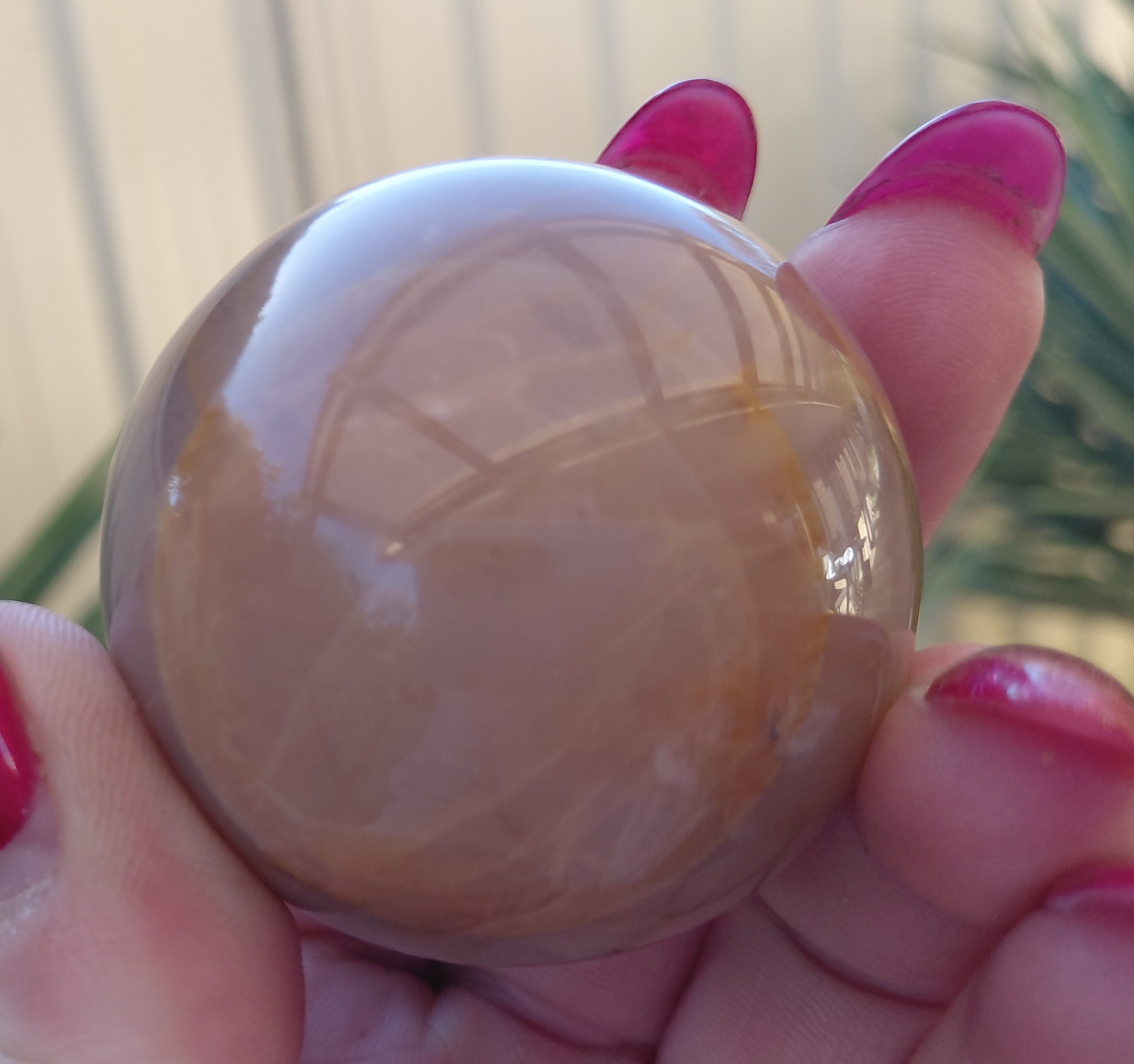 Measuring approximately 3 inches in diameter, our Peach Moonstone Sphere fits perfectly in the palm of your hand, making it ideal for crystal healing practices or as a decorative piece on your desk, shelf, or coffee table. Its smooth surface feels wonderful to touch, and the way it catches the light is simply mesmerizing.