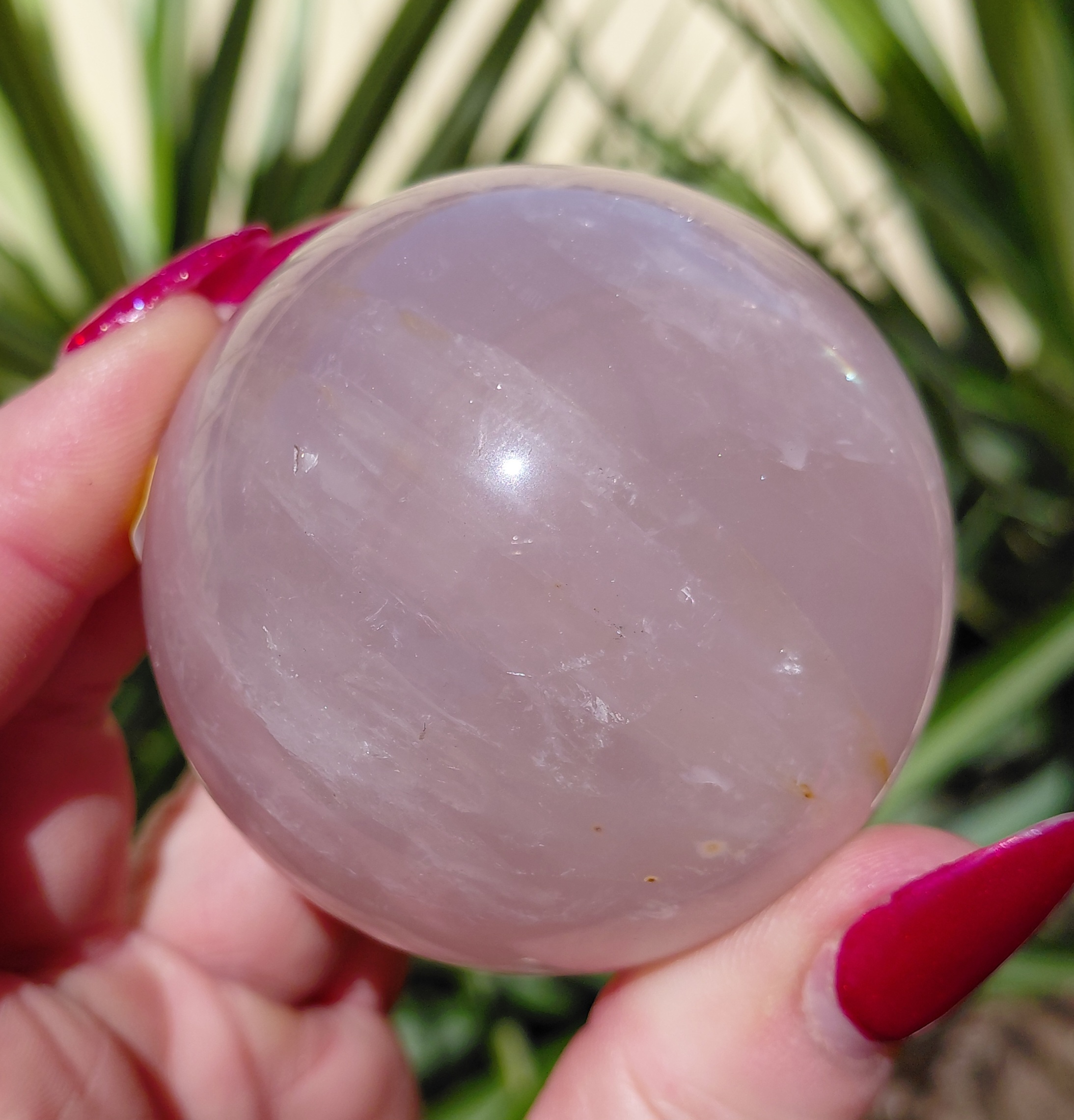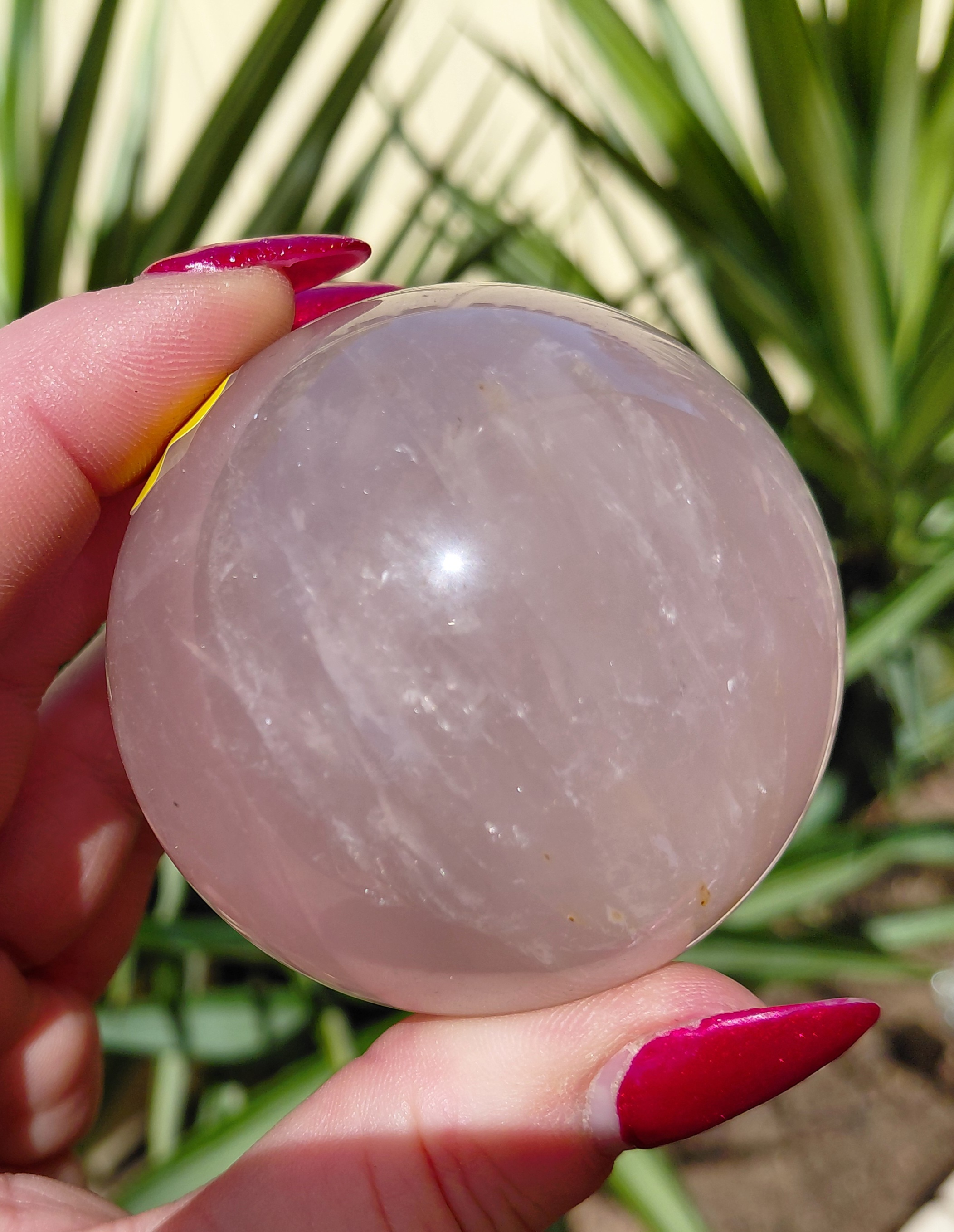 Each Rose Quartz Sphere is unique, showcasing the natural variations and inclusions that make it one-of-a-kind. This means that no two spheres are exactly alike, adding to their charm and appeal. Whether you're a seasoned crystal enthusiast or just starting your journey, this sphere is a must-have for anyone looking to enhance their spiritual practice.