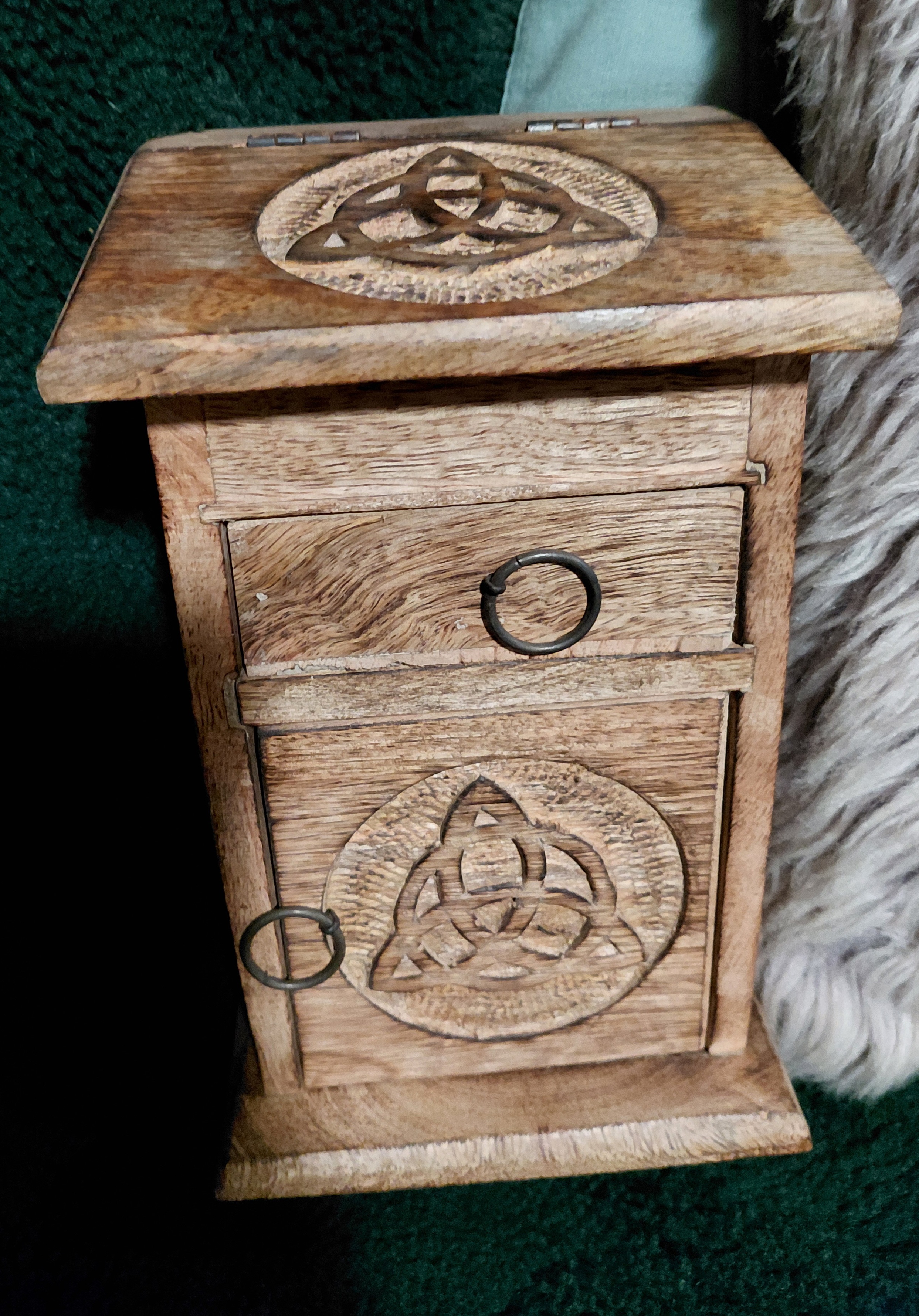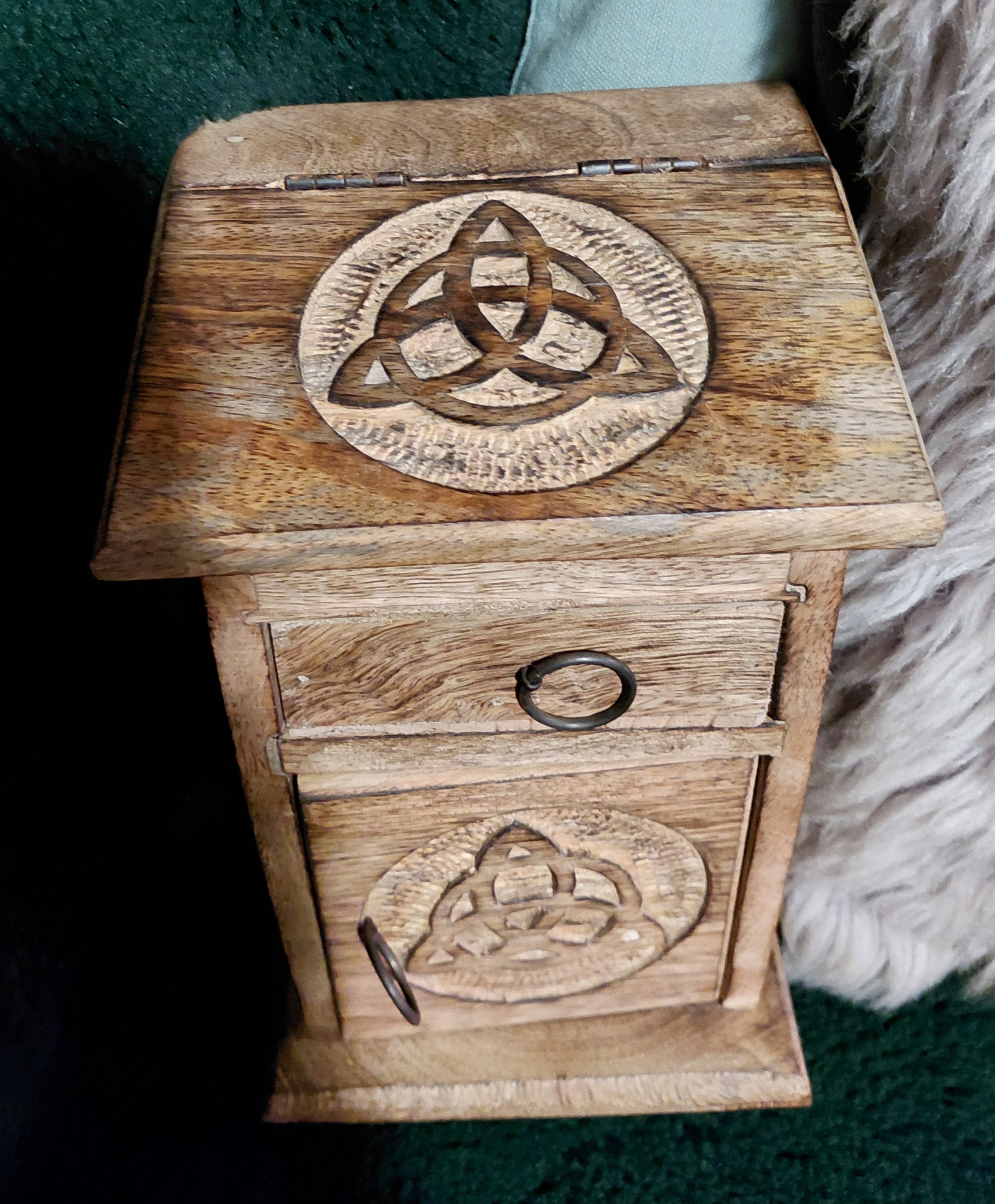 Wooden triquetta witch herb apothecary chest